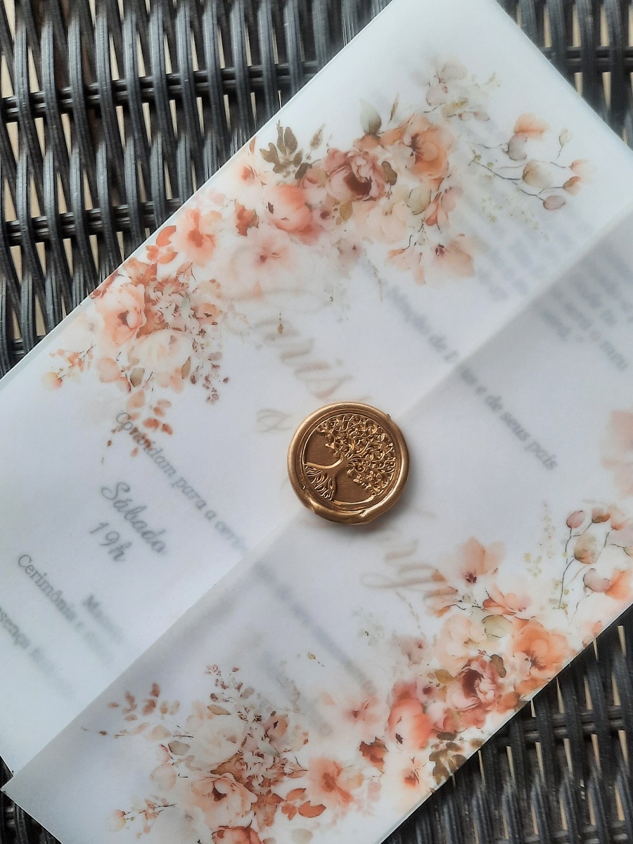 Convite com lacre e envelope no vegetal.